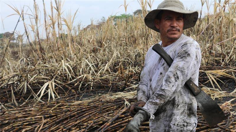 39岁的赫尔南德兹已经砍了12年的甘蔗 / Al Jazeera