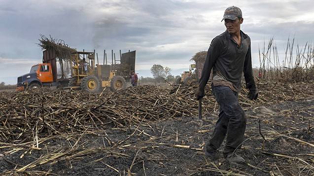 上午10点,在萨尔瓦多(编者注:中美洲国家)的蒂拉布兰萨小镇外的甘蔗地里,气温已逼近31摄氏度。劳工们不管男女老幼,刚一天亮就到了这里,他们穿着厚牛外裤、长袖衬衣,头戴面巾以防被太阳光灼伤。一行行甘蔗之间,他们快速地弯腰、伸手、修剪和整理甘蔗,准备几周后就要收割。阳光下没有多少阴凉处,百事和芬达的旧瓶子盛满水,原封不动挂在树杈上。劳工们大口吸着稠密的空气,在甘蔗地里马不停蹄劳作,持续到正午时分轮班结束。
