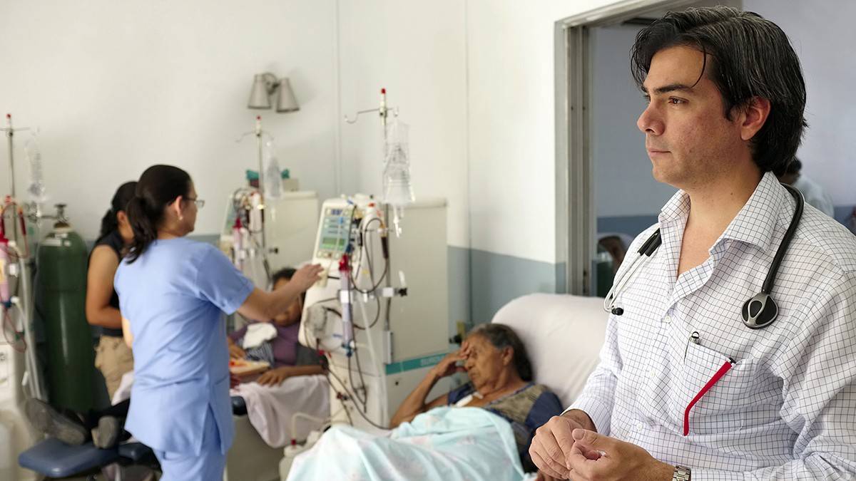 1998年,年轻的医生加西亚·特拉瓦尼诺开始在罗萨莱斯医院工作,所遇到的情况无异于战场。他曾以为,需要治疗的人可能患有心脏病、神经病、眼疾等,没想到,他所接待的全是垂死挣扎或很快便去世的肾衰竭患者。人数如此之多,以至于病床供应不足,剩下的病人全暂留在医院的走廊里。