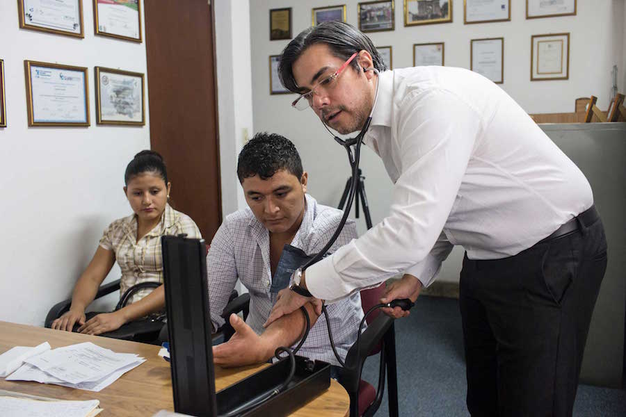 加西亚·特拉瓦尼诺医生正在为患者量血压 / Brett Gundlock/Boreal Collective