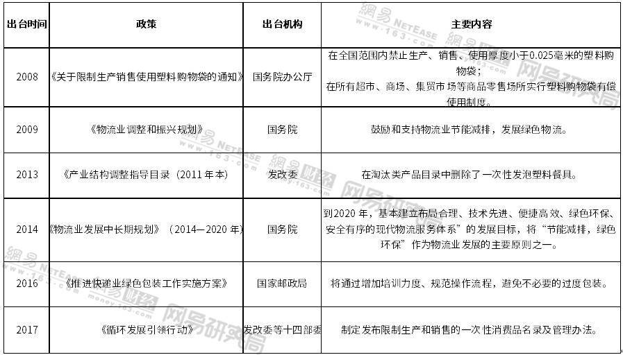 表4 中国出台的与塑料垃圾有关的主要政策(来源:网易研究局整理)