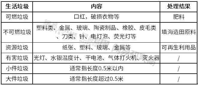 日本的垃圾细分为可燃垃圾、不可燃垃圾、资源垃圾、有害垃圾等各个类别,而每个类别里还具体包含各种垃圾的明细(如下表3所示)。