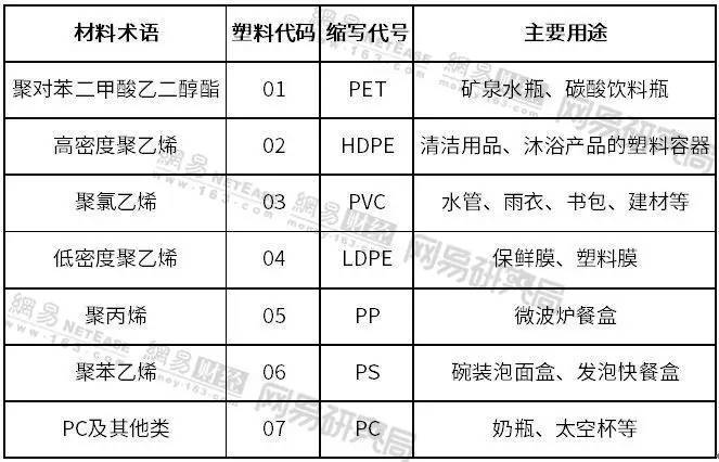 表1 塑料回收标志详览 (来源:《中国包装》和网易研究局整理 制表:网易研究局