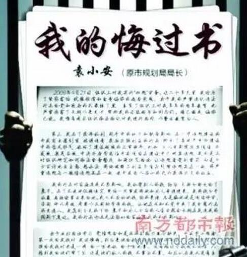 △早先媒体头版曾全文刊登官员悔过书