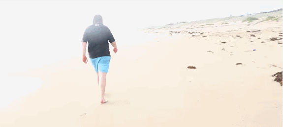他潇洒地将毛(道)巾(具)甩到肩上,来到了沙滩……