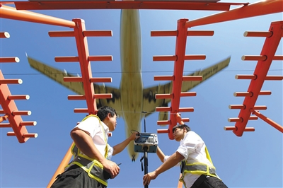 航班飞过,空管技术人员测试信号。