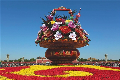2016年国庆期间,天安门广场中心花坛。