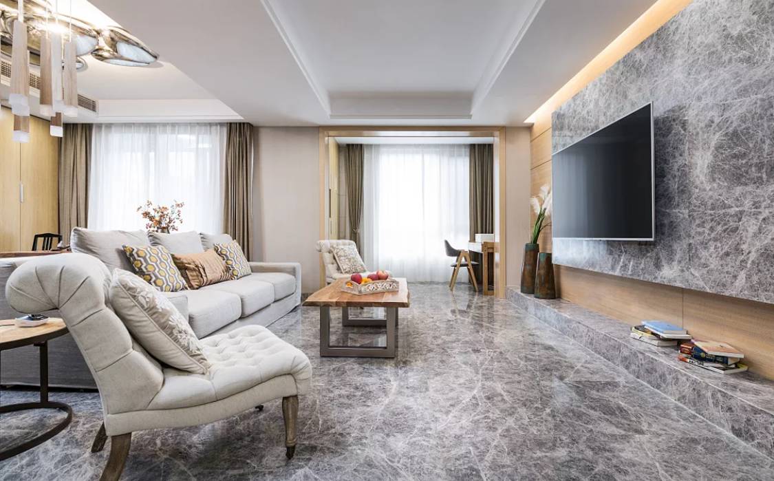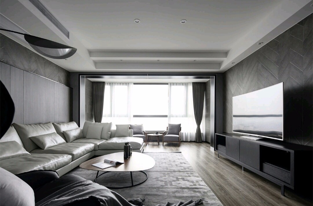 现在的商品房很多都是有2个阳台的,而客厅作为接待客人的空间,自然是更加的美观大方点的好,所以有2个阳台的话,最好就把晒衣服的功能布置在远离客厅的那个阳台;那么靠近客厅的这个阳台就可以有更多的发挥空间,其中一个比较大气的做法就是把它纳入到客厅空间,取消传统思路中的客厅阳台推拉门,这样做的效果还挺大气的,各位不妨参考一下下方案例!