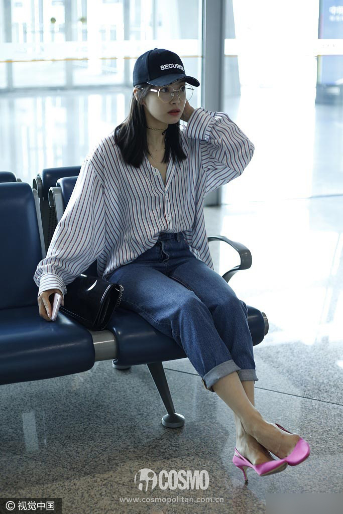 ▲宋茜脚踩Vetements x Manolo Blahnik粉色高跟鞋