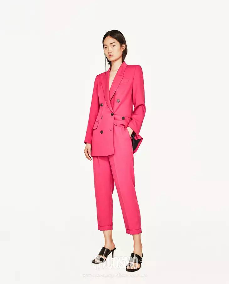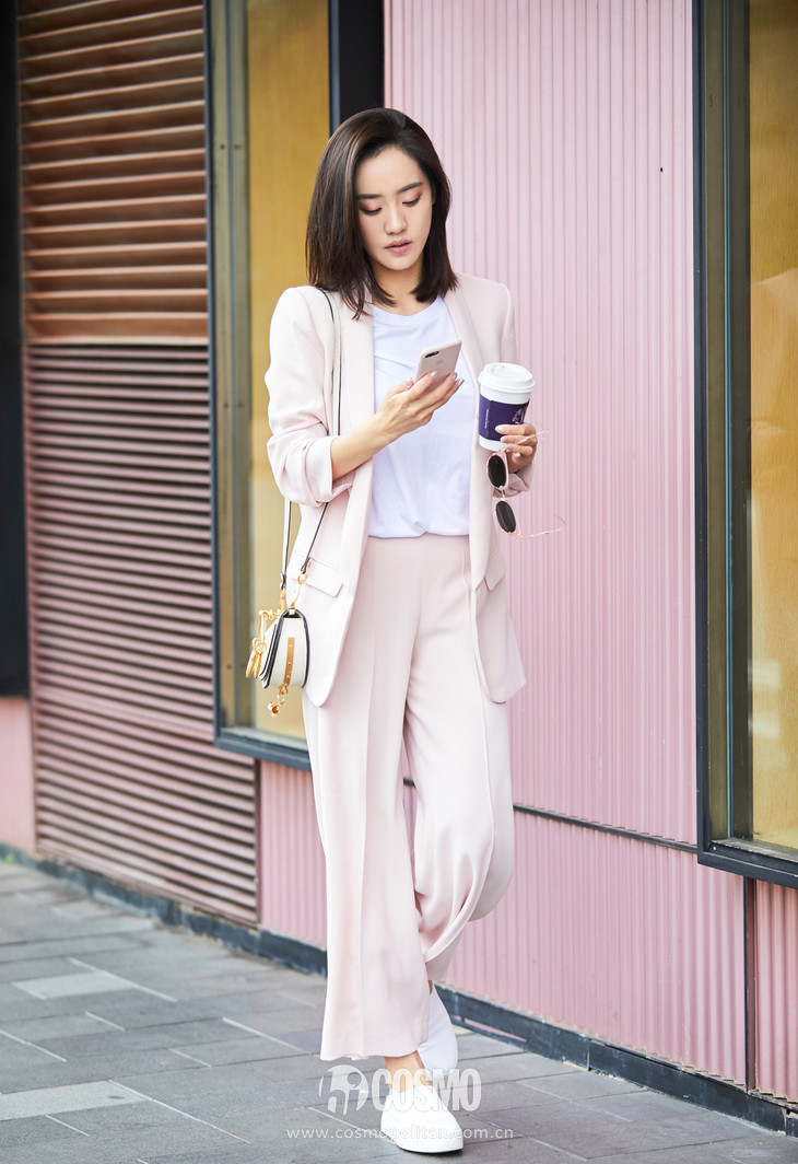 另一种精明干练的打扮则是吸烟装,黑色吸烟装总给人一种“盛气凌人”的感觉,但粉色的西服套装就会强调女性气质多一点。