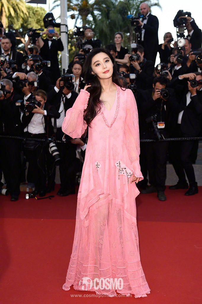 ▲范冰冰身着LOUIS VUITTON定制礼服