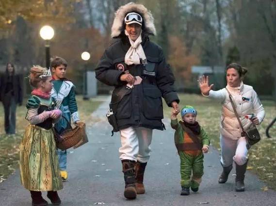 万圣节的时候出门要糖果,特鲁多都带着小孩一起,好男人的魅力指数整个爆表!