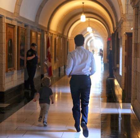 不管是和儿子在办公室躲猫猫,在长廊赛跑,还是一起接受媒体访问,特鲁多居家好奶爸的形象展露无疑!