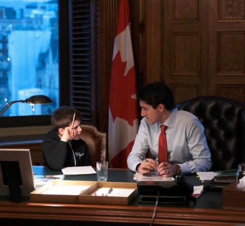 前阵子,特鲁多在IG上晒出小儿子Hadrien在办公室陪他上班的一天,3岁金发小萌娃与性感帅爸爸的组合,立马把世上所有女人心搜刮一空。