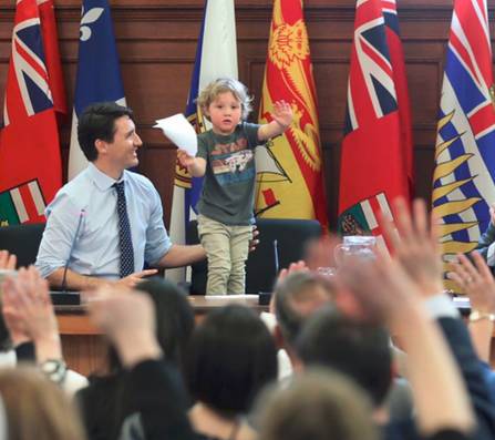 工作这么忙,还能对小娃儿这么有耐心!(以后老公说太忙不带娃,是不是可以顶他你比加拿大总理还忙?!)