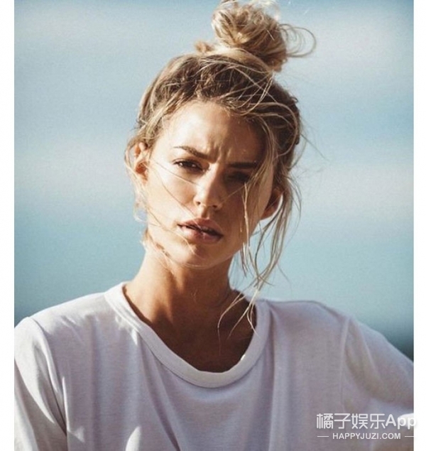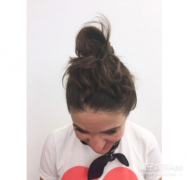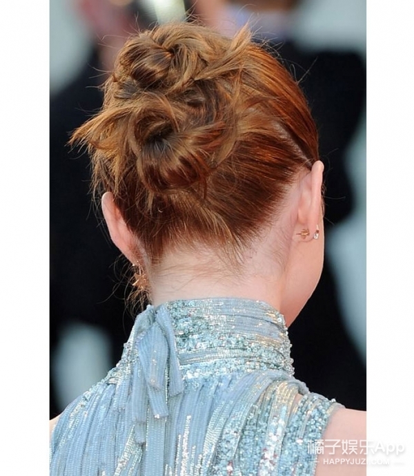 如果头发不够长,可以学习Emma Stone绑两个发髻,上方的丸子就有办法能够散开。