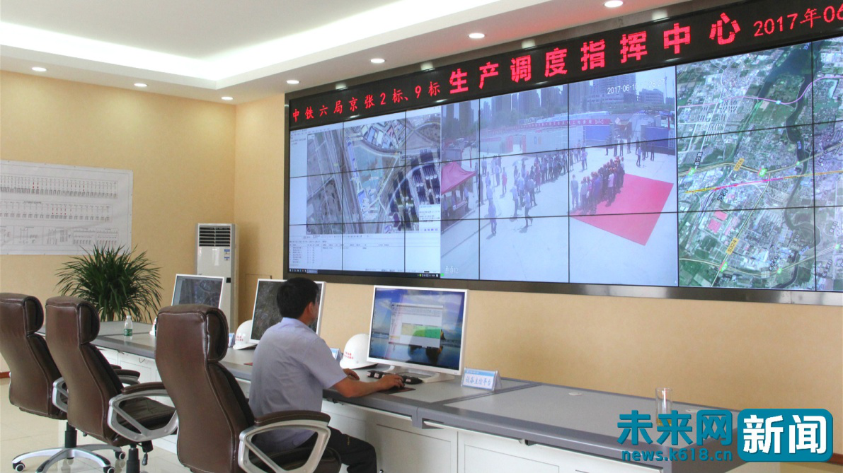 中铁六局京张2标生产调度指挥中心里,工程师监测项目进度。未来网记者 和海佳摄