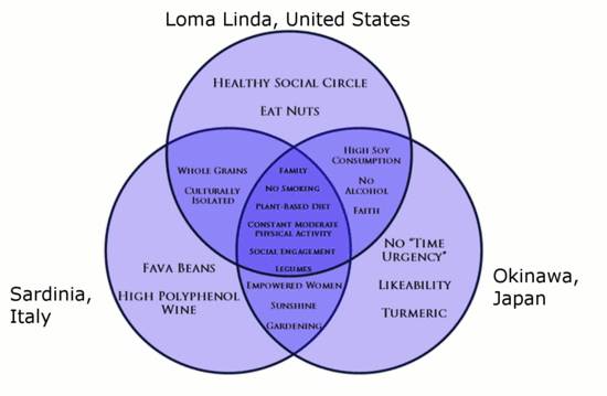 十几年的研究里,他找到了这五个地区的共性和特点,将他们记载下来,为人们科普介绍蓝区里老人们的生活和饮食方式。