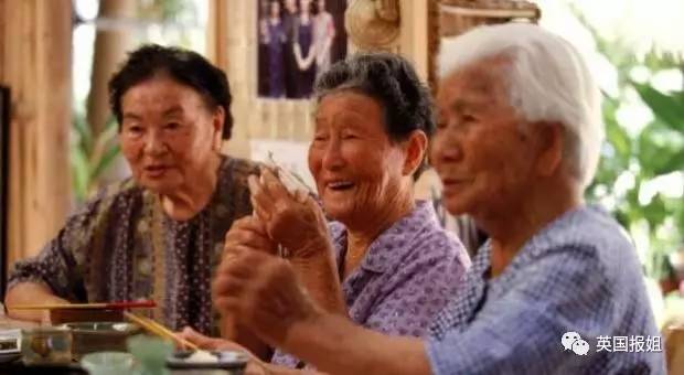 日本冲绳的老人喜欢聚在一起喝茶聊天等。这些老人们有着非常健康的日常活动,社交与生活的平衡把握得很好。