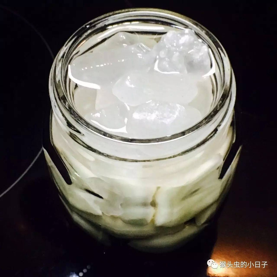 大概1个小时以后,冰糖就会有一部分溶解。