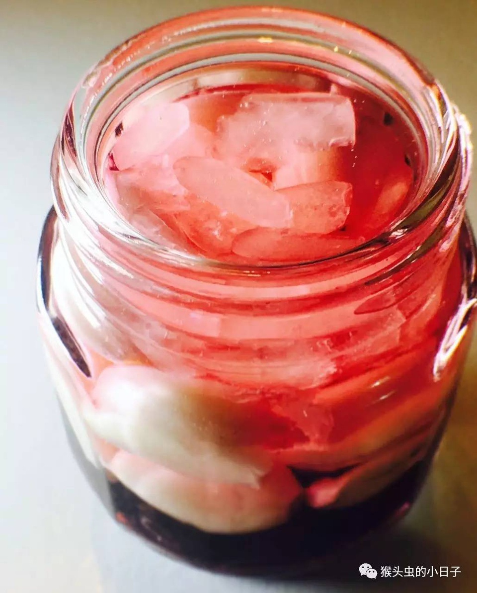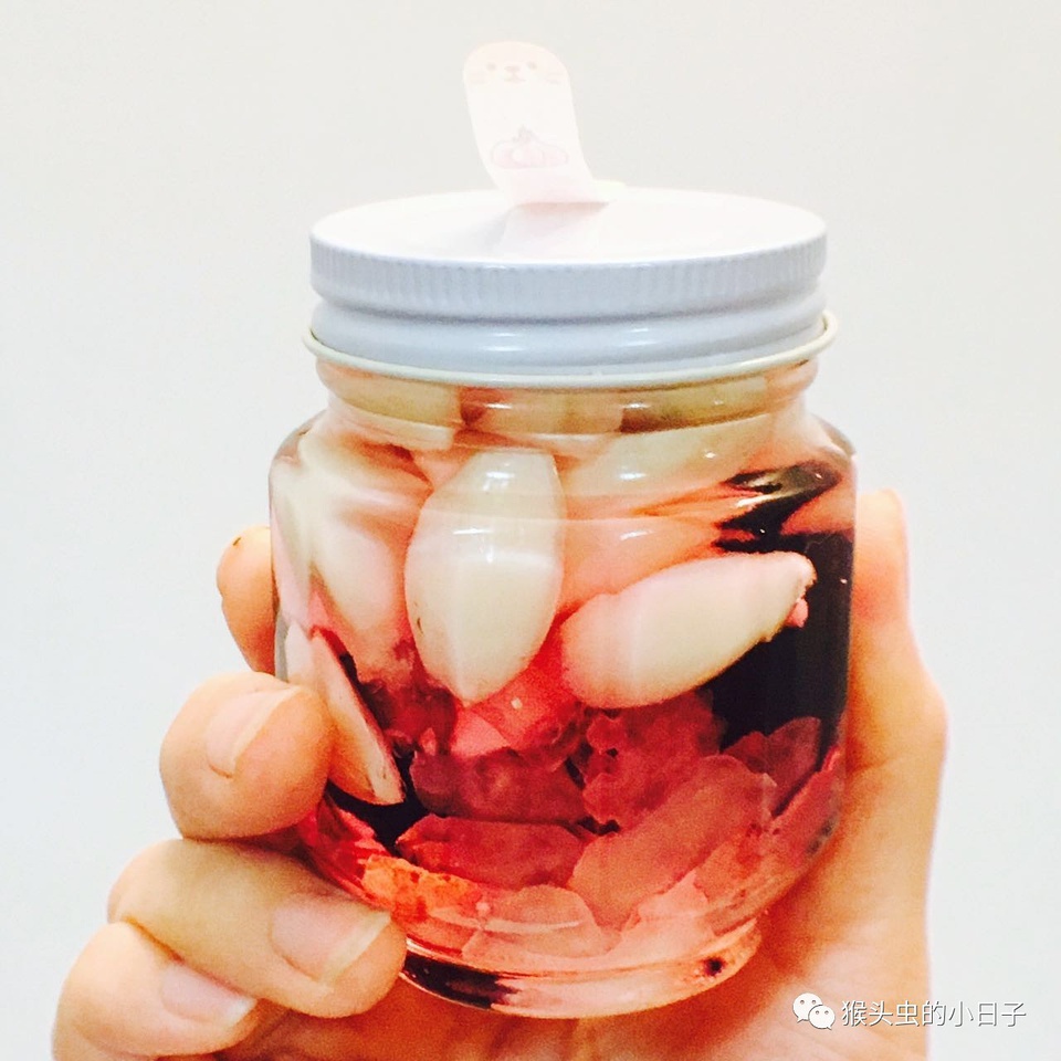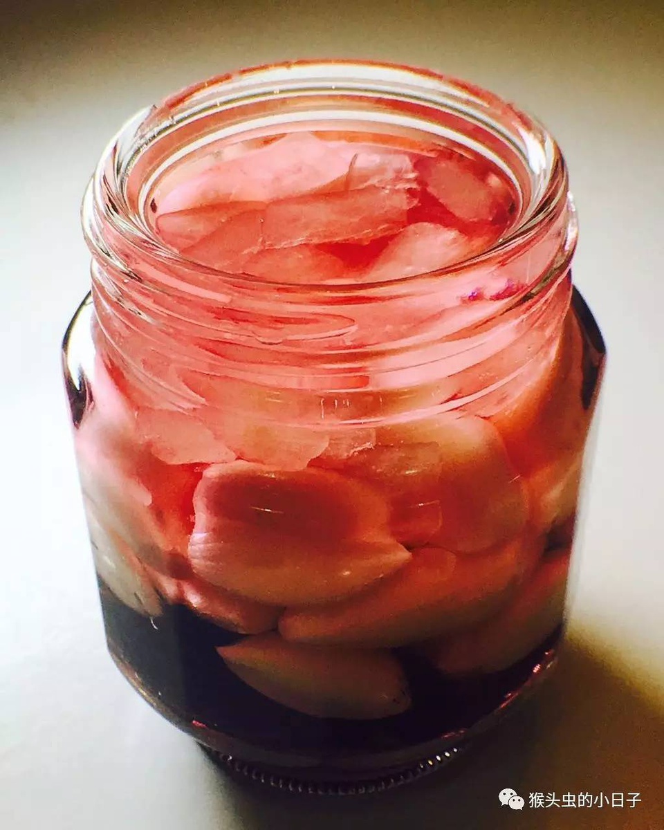 不过通常会反复叮嘱收到的人,1-3个月以后才可以开盖子,看到蒜全部变成粉红色就可以拿出来风雅的吃了,不过泡的越久,就越甜。