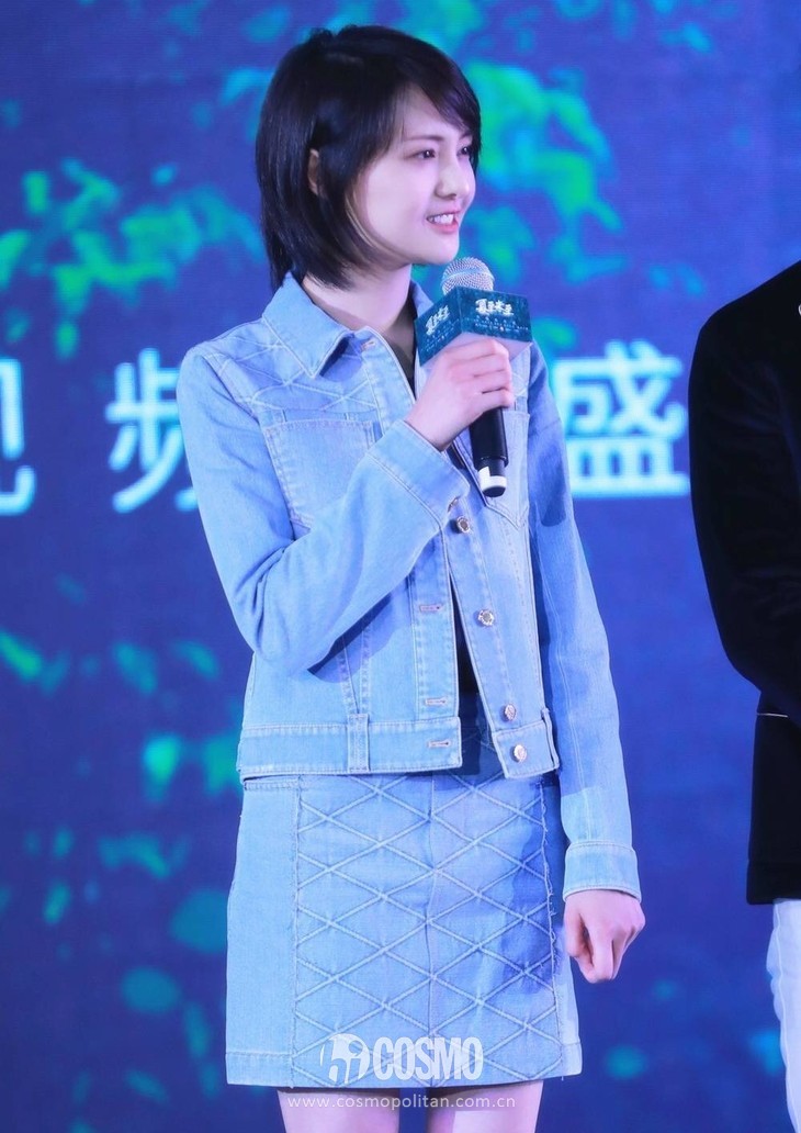 郑爽身穿Louis Vuitton 2017春季系列牛仔夹克和半裙,出席电视剧《夏至未至》开播发布会。