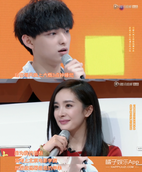 为啥黑眼圈重是有原因的,他说自己每天都凌晨3点多才睡,因为他的目标是考上北京电影学院,做杨幂姐姐的学弟。