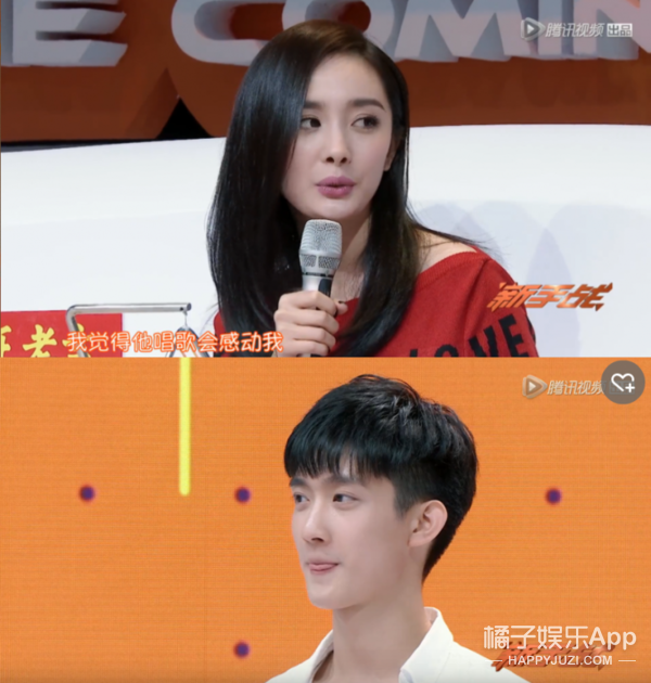 你看看杨幂的表情就知道了,沉醉了,还以一副被惊艳的表情对着张大大说,“他声音好好听。”