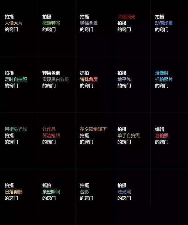 官网显示,苹果一共列出了19个有关拍照窍门的教程,包括拍摄人像大片、微距特写、竖幅全景、动感场景、定时自拍、黑白效果、抓拍等等,每个教程都有对应的视频可供学习,相信掌握这19个窍门后,摄影技术会更上一层楼。