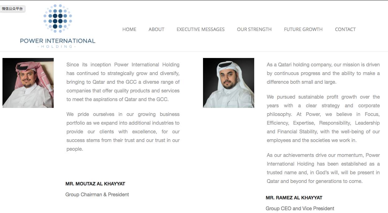 同时,他还是卡塔尔Power International Holding公司的董事长兼总裁。