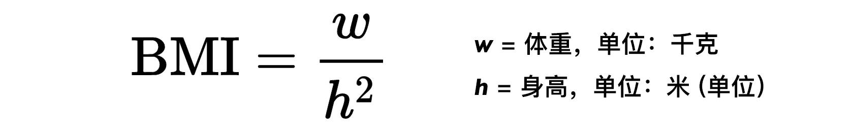一九九七年开始,世界卫生组织提出了一种简单粗暴的定量标准。BMI≥25 即提示为“超重”,BMI≥30 则为肥胖。BMI 是身体质量指数的缩写(Body Mass Index),计算公式如下: