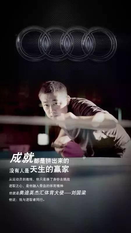 对刘国梁来说,前进之路,即进取之路、超越之路。进取精神,已成为他生命中的一部分。每一次堪称圆满的身份转变,都成就了今日的刘国梁,相信“奥迪英杰汇体育大使”的身份,也将让他书写出一段属于驭变者的全新传奇。奥迪品牌将与刘国梁一起,共同引领同怀进取之心的人们,驭变而胜!