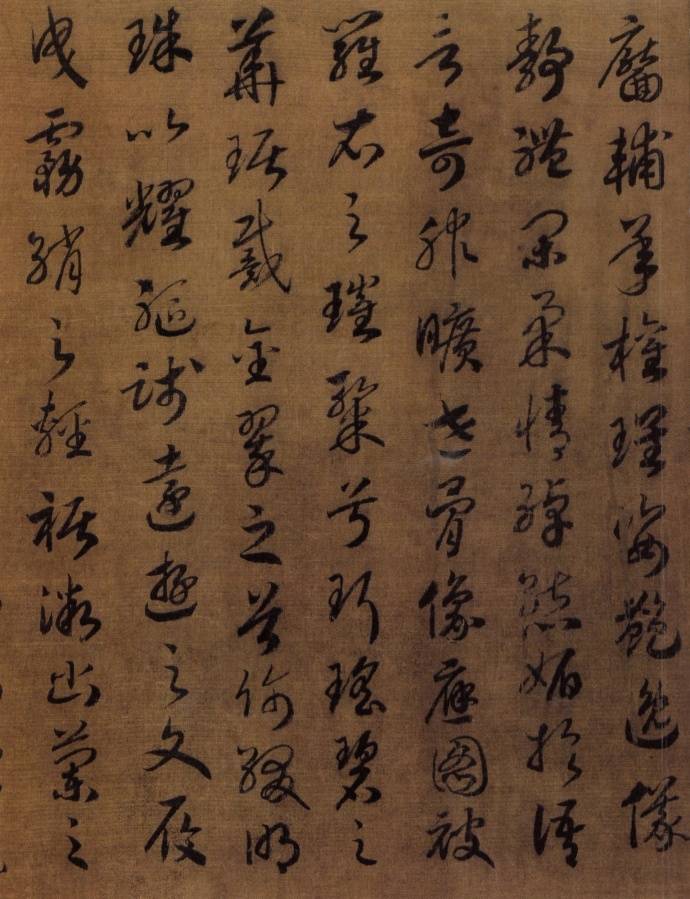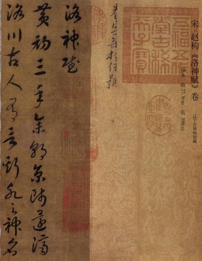 宋代赵构草书书法长卷《洛神赋》绢本,纵27.9cm,横398cm,辽宁省博物院藏。