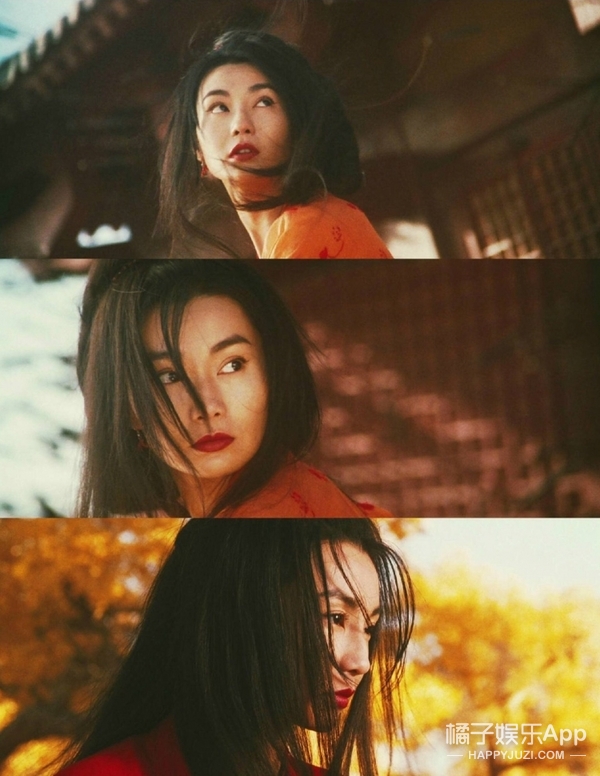 眉峰犀利的镰刀眉,与张曼玉那张菱角分明的脸十分般配,一抹浓郁的猩红唇色,与落叶,与红衣,与凛然的目光,与随风肆意的黑发,是我心中永远的红衣女神。