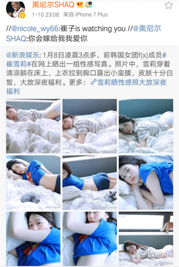 原标题:表白完Baby又表白宋茜,奥尼尔这是要把国内艺人撩个遍吗? 今天下午,NBA球星奥尼尔发微博表白宋茜,并表示曾经的最爱是Angelababy,只可惜已经结婚了,这是在搞事情么? 橘子君独家