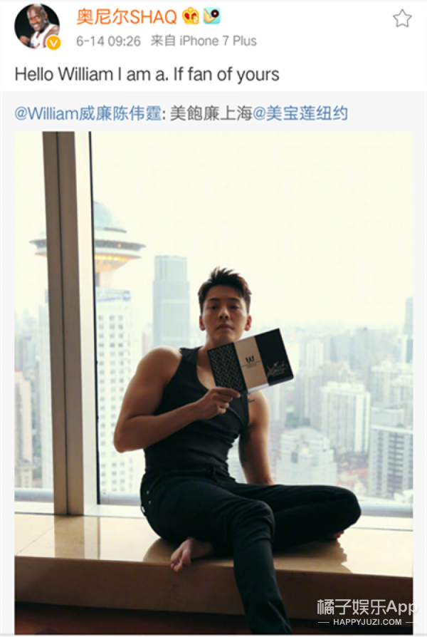 6月14日下午,奥尼尔转发陈伟霆微博并自称是他的粉丝,引发粉丝惊呼原来奥尼尔也是“女皇”?