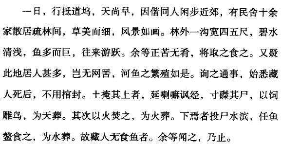 藏区一些地方的水葬风俗,也导致当地居民忌讳吃鱼。但这类区域很少,而且水葬也并非普遍施行。