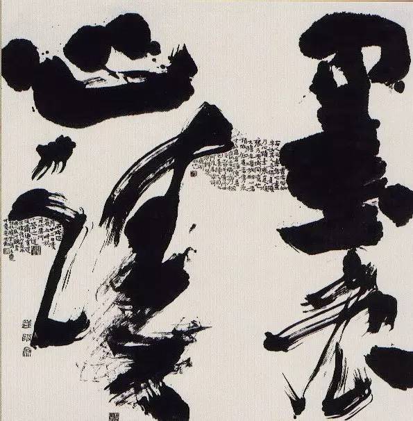 要问狂草书是怎么写出来的,其实狂草就是在执笔使转的动作下完成的,什么是使转,它的动作是什么样的呢?这么形容吧:“笔似流星手似电,身如蛇形腿如钻;猫窜狗闪,兔滚鹰翻,蟒翻身,龙探爪,猴上树,虎登山;你中有他,他中有咱;天宫管王母娘娘要路费,地府向土地爷爷索盘缠,漫天要价就地还钱;独悬空中命一线,飘落地下土升烟;八方牵手四处缠绵;周公瑾群杀三江口,伍子胥独自闯昭关,峰峦叠嶂,一马平川;蒋干偷书能往返,荆轲刺秦去不还。”反正就是通过闪展腾挪、纵横盘馀、沟环牵引等等这样的运动来完成的。