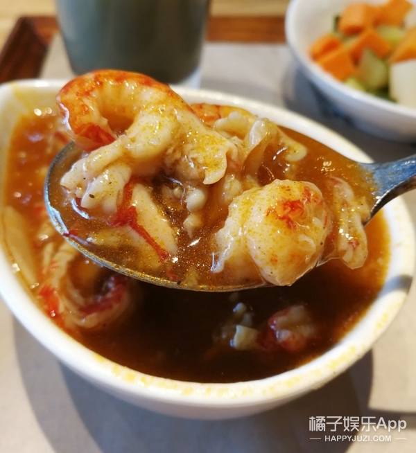 龙虾汁儿简直不能再诱人,小心翼翼的洒在米饭上,生怕浪费了一点点或者就是米饭浇的不均匀,光是这一幕就够你流一阵口水的了。