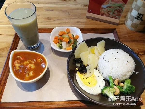 单点龙虾饭39元,不同的套餐价格不同,橘子点的是小菜+绿豆汤+龙虾饭,48元,贵贵贵,其实想想本来小龙虾就不便宜,还省去了剥虾费,安慰感总算多了一点点。