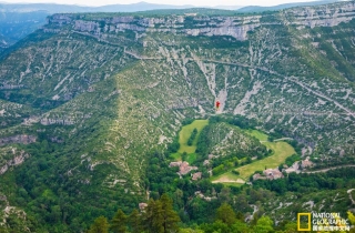走松绳运动员Guillaume Barrande是这次活动的组织者,他组织搭建了1662米长的高空扁带,距离纳瓦瑟莱山谷有340米之高。该山谷属于法国中央高原山脉,是联合国教科文组织认定的世界遗产地。刚开始的几天里,山谷里的风和备用绳的干扰让队员们吃尽了苦头,好在最终有4名队员向全程发起冲击。