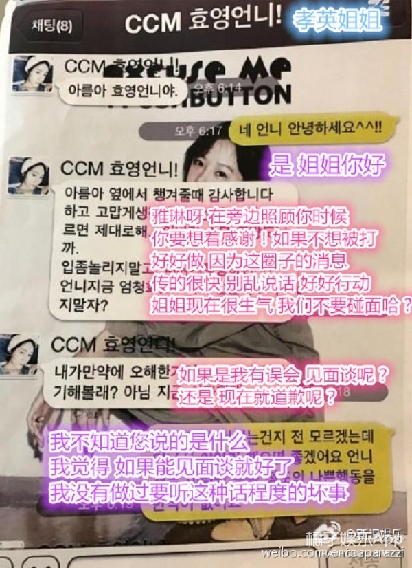 却没想到遭到自称T-ara公司前工作人员的爆料“看够了刘孝英刘花英姐妹俩的哭相”,同时还公开了刘孝英与T-ara成员李雅琳的聊天截图,截图显示刘孝英曾威胁要划花李雅琳的脸。