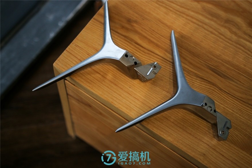 略有弧度的三角形支架颇有技术感,整体采用了金属材质,底部配备橡胶防滑垫脚,用料相当的扎实、牢固,表面采用了微磨砂处理工艺,可以反射不均匀的幽幽光泽,兼具美观和实用。