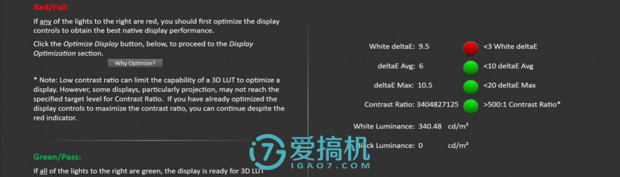 色准方面,我们选择先将色温调整至标准的6500k左右后进行测量,104色平均DeltaE为4.8,最高DeltaE也只有12.5,对于这么大尺寸的面板来说表现相当出色。
