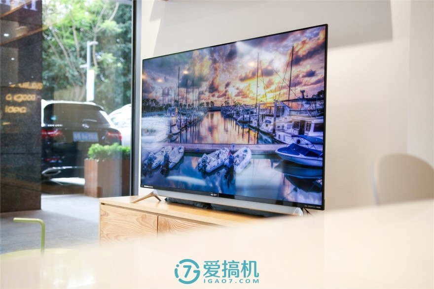在移到正常观感距离后,超窄边框的效果更加突显,作为目前屏占比最高的电视之一,其大尺寸高屏占比的屏幕带来的画面冲击力很强,显示效果也比较通透,整体显示效果还是相当出众的,这块屏幕给人的第一印象真的非常深刻。