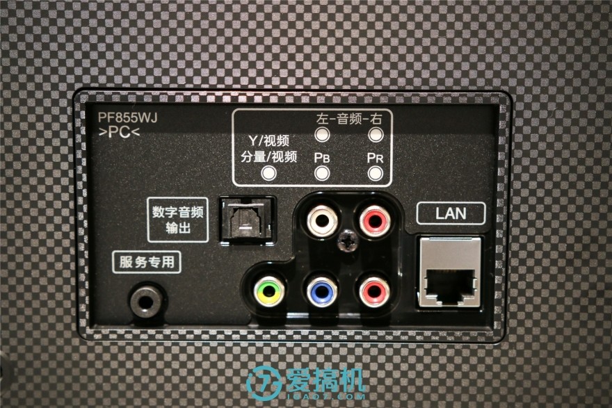 左侧盖板下隐藏着数字音频输出、LAN网线接口、色差分量接口和夏普服务专用接口。