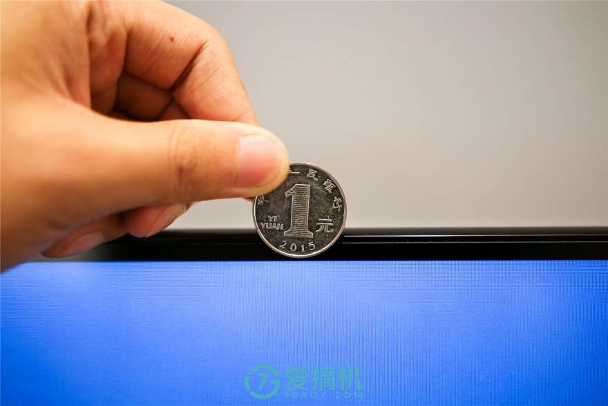 我们现在拿一元硬币来给大家作为参考,1.6毫米的宽度大概只占一元硬币的四分之一左右,相当的惊艳。