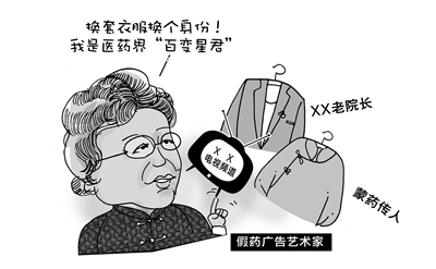 先后出现在西藏卫视、青海卫视、甘肃卫视、东南卫视、辽宁卫视、吉林卫视和黑龙江电视台等多家省市级电视台的“健康节目”中的她,因每次出现时的身份不同,所推销的药品名称、功效也不同,而被网友戏称为“虚假医药广告表演艺术家”。