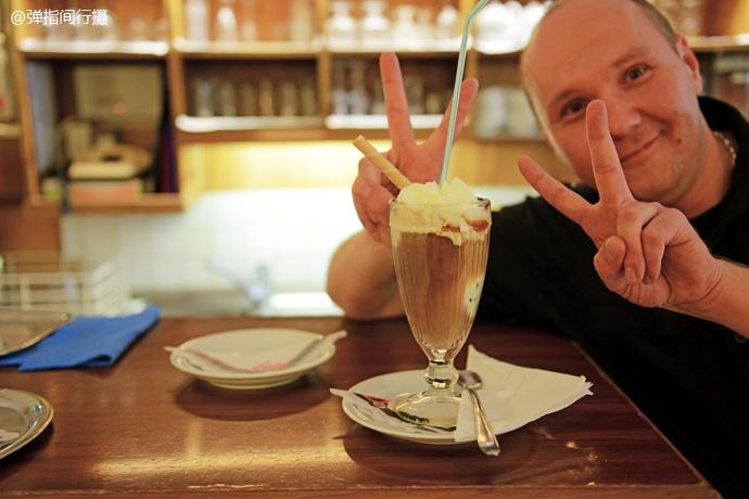 逛累了,我们找了一家百年咖啡店吃点东西补充体力,我正在拍咖啡饮品时,一个淘气的店员闯入,惹得一阵狂笑。