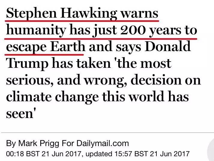 英国《每日邮报》直接在标题中写道:霍金发出警告,人类只有200年逃离地球!